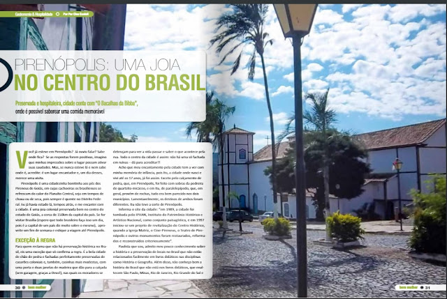 Esta semana saiu edição 11 da revista Bem Mulher. Em Gastronomia & Hospitalidade, coluna que assino, desvendo a joia do Goiás para quem ainda não a conhece: Pirenópolis, uma cidade encantadora de gente muito hospitaleira.