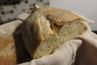 Lá pelas quatro da tarde, eu fiz o pão e, como ainda não sou muito habilidosa com sovar a massa, demorei cerca de uma hora para fazer duas receitas. Aí pus pra descansar e quando deu umas nove da noite eu moldei os pães que só foram para o forno às 22h30. Resultado, só pude comer hoje. Saiu do forno às 23h15 e então é preciso esfriar, descansar um pouco, para poder cortar e aproveitar melhor os odores, o crocante da casca e o sabor calmo do pão.
