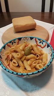 Hoje usei azeitonas verdes para fazer uma bela massa e degustá-la com muito prazer como a gente sempre merece, todos os dias. Afinal, cozinhar é a mágica que nos permite isso.