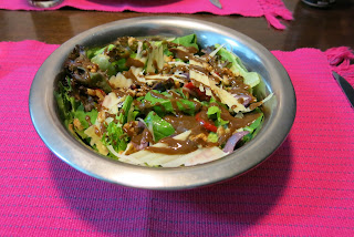 Essa de hoje, eu criei para a edição de amanhã (17/10) do Lá em casa pra jantar. Será servida juntamente com um terrine de abobrinhas, ricota e queijo parmesão. Ambos os alimentos são leves, a terrine e a salada, mas o gosto é muito marcante.
